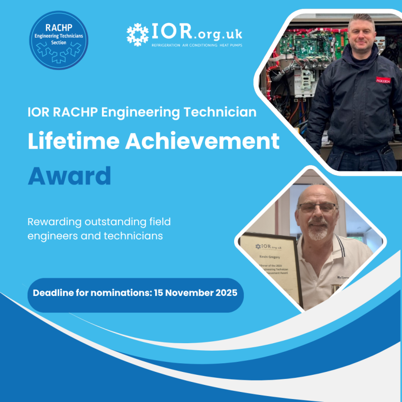 The Institute of Refrigeration (IOR) has opened nominations for its RACHP EngTech Lifetime Achievement Award, recognising long-standing dedication among field-based engineers in the refrigeration, air conditioning, and heat pump sector.